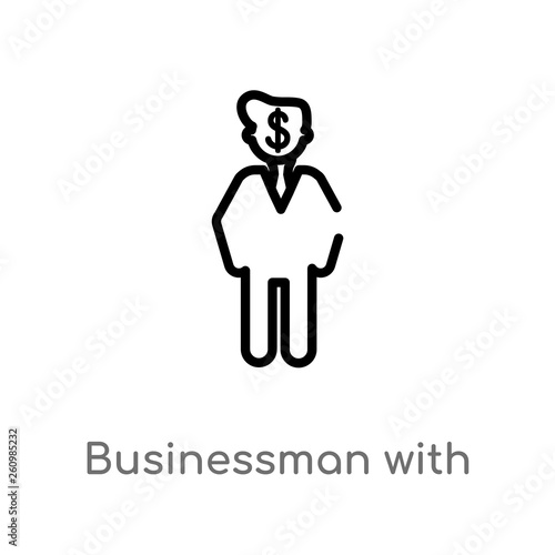 outline businessman with financial message about dollar vector icon. isolated black simple line element illustration from people concept. editable vector stroke businessman with financial message