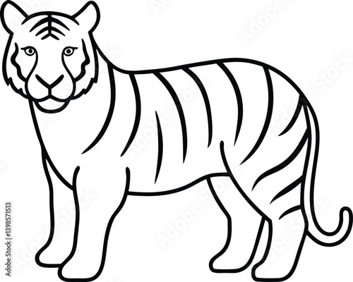 Outline Drawing of a Tiger in a Minimalist Line Art Style