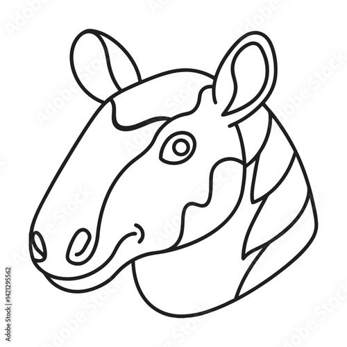 Outline drawing of a zebra head in a minimalist style for coloring books and illustrations