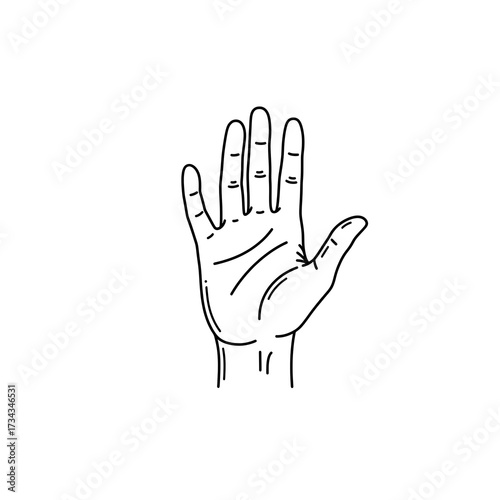 hand, palm, gesture, stop, outline, black-and-white, illustration, drawing, symbol, signs, graphic, design, concept, icon, art, vignetting, hand-drawn, line art, isolated, white background, human, body part, achieving, communicate, warning, attention, simple, minimalist, clear, clean, finger, arm, hand gesture, stop sign, deny, no, denied, fitness, royalty free