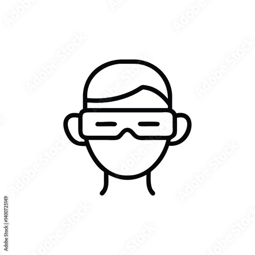 Outline Icon Of A Person Wearing Goggles Isolated On A White Background