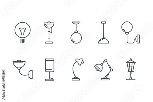 Outline Lamp Icon Set. Line art. Stock vector.