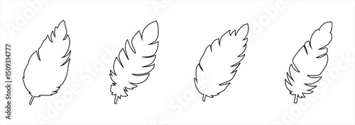 Outline Sketch of Feathers Isolated on White Background. Concept of Nature Art, Minimalist Design, Elegant Plumage, Graphic Elements for Decor, Icons, Wildlife Illustration, Bird Feathers