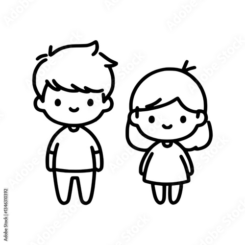children, boy, girl, outline, illustration, cute, adorable, simple, graphic, character, smiling, happy, friendship, innocence, togetherness, pose, playful, design, minimalistic, expressive, cartoon, joyful, figure, charme, youthful, fun, personality, image, creativity, blithe, sweet, emotion, interaction, closeup, delightful, lifestyle, companion, lovable, charming, cheerful, character, engaging, whimsical, childhood, happiness
