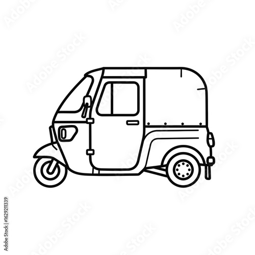 Outlined Auto Rickshaw with Covered Passenger Area and Distinctive ThreeWheel Design
