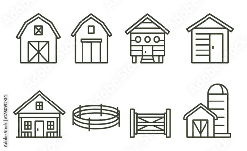 outlined, icon, farm, building, structure, barn, stable, house, hut, fence, gradient, background, illustration, design, farmhouse, storage, agriculture, rural, outline, graphic, drawing, architecture, symbol, farming, iconography, simplicity, minimalism, line, monochrome, black-and-white, element, collection, set, rustic, countryside, shelter, farmyard, facility, property, estate