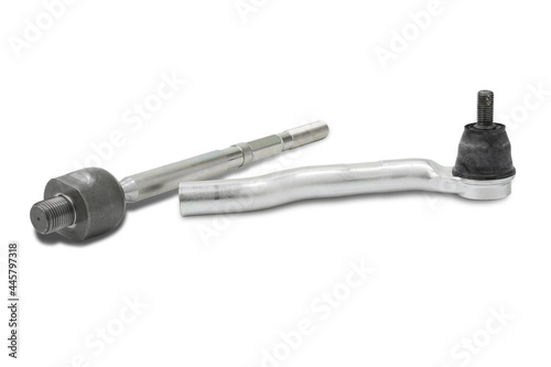Outside and inside Ball joint of steering rack arm car on the white background repair part car concept