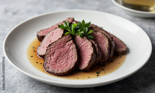 roast beef, beef, roast, main course, dinner, comfort food, home cooking, plate, meat, tender, hearty, homemade, food photography, studio shot, closeup