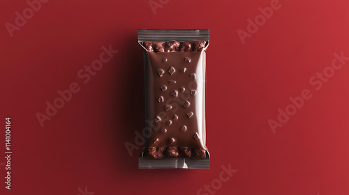Overhead flat lay view of energy protein bar or chocolate bar snack packaging template design