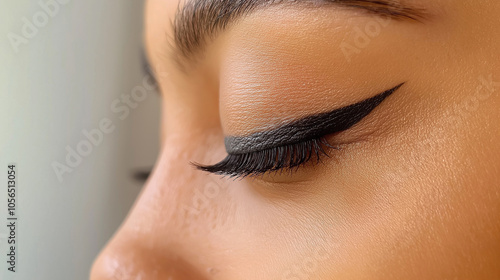 Overhead Shot of Eye With Graphic Eyeliner Design, with bold colors and patterns to showcase creative makeup artistry