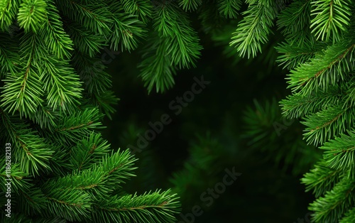 Overlapping fir tree branches vibrant green textures and intricate details creating a natural aesthetic ideal for seasonal or organic designs