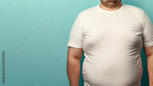 abdomen, small, corpulent, obesity, outfit, overweight, person, problem, shirt, adult, stomach, male, thick, tight, tummy, unhealthy, view, wear, weight, wellness, man, size, loss, dieting, background, light, big, blue, body, closeup, diet, belly, fat, fats, lifestyle, guy, health, clothes, fatness, guts, jean, hand, space, copy, text, wearing, white, t-shirt, figure