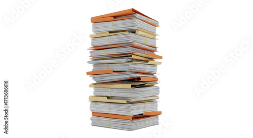 clipping path, paperwork, document, file, stack, pile, folder, paper, report, datum, information, manuscript, archive, workload, bureaucracy, administration, deadline, stress, overwhelming, research, office, business, corporate, legal, education, finance, clutter, organisation, tied-up, overload, panning, cinematic, studio shot, isolated, white background, no people, copy space, detail, rubber band, stationery, messy, pile up, heap