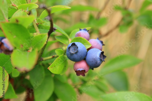 Owoce borówki amerykańskiej dojrzewające na krzaku