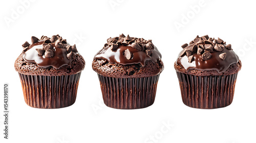 Pack Collection Delicious Chocolate Muffins A Tempting Trio for Baking Inspiration set against transparent background