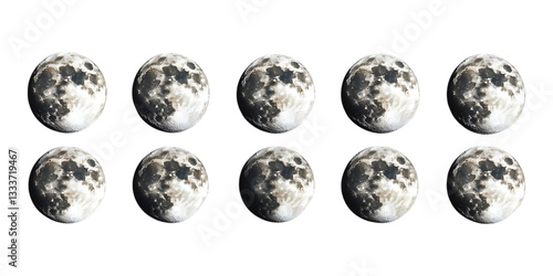 Pack Moon Set on Transparent Background for Space Art, Astronomy Illustrations, and Celestial Designs