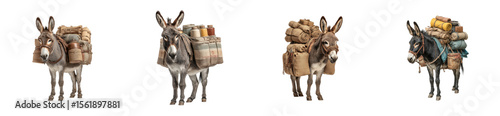 Pack mules transporting goods rural area animal outdoor side manual labor cut out set png