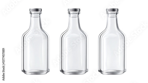 Pack of Clear Glass Bottles set Against Transparent Background for Beverage Branding, Product Packaging, or Eco-friendly Marketing
