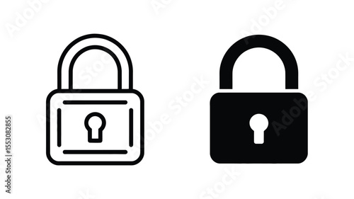 Padlock Icon Pair – Minimal Line and Bold Silhouette Style for Digital Use