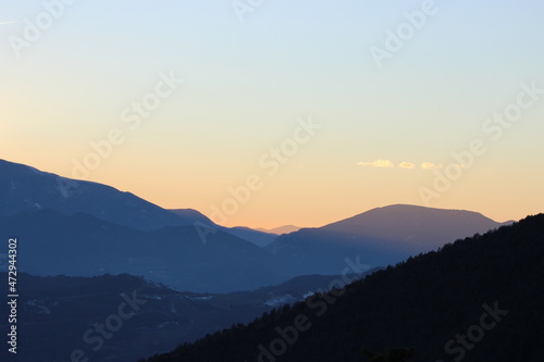 mountain, countryside, sunset, heaven, nature, sunrise, fog, sun, cloud, mist, morning, forest, hill, view, tree, light, travel, vale, blue, evening