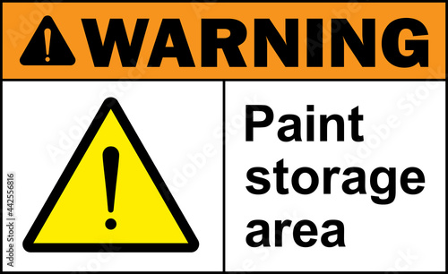 Paint storage area warning sign. Safety awareness signs and symbols.