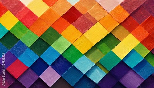 painted background texture of symmetrically arranged squares painted in the colors of the LGBT flag paint