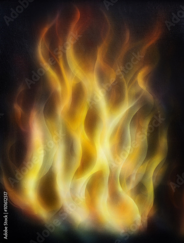 Painting Fire on black background, Airbrush painting. painting on wood.