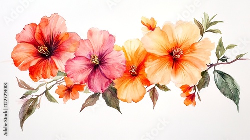 tropical flower, warm colors, soft focus, floral arrangement, brushwork, pigment, oilpaint, watercolor, collage, textured effect