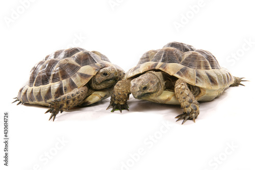 studio, white, background, cut-out, cut, out, pet, tortoise, portrait, awake, coming, of, hibernation, springtime, spring, facing, reptile, small, animal, pair, 2