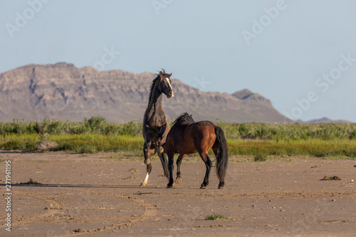 Pair of Wild Horse Stallions Fighting in the Utah Desert