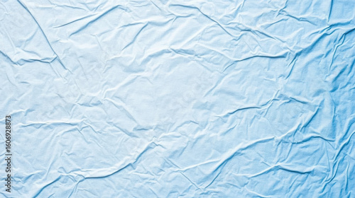 Pale blue abstract background with textured fabric. Crumpled cloth sheet. Minimalist backdrop surface. Artistic textured wallpaper.