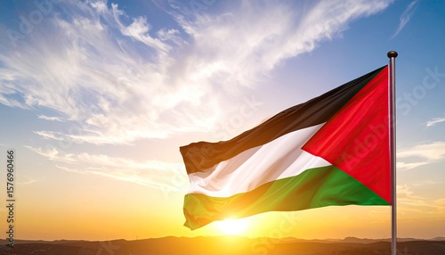 flag, palestine, sunset, sunrise, sky, cloud, waving, national, symbol, pride, independence, peace, honour, nationalism, country, middle east, politic, culture, history, beautiful, proud, colours, proudly, symbolism, daylight