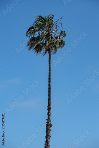 tree, palm, sky, nature, tropical, palm tree, tall, green, tree, blue, vacation, beach, trunk, palm, holiday, travel, sun, california, blue skies