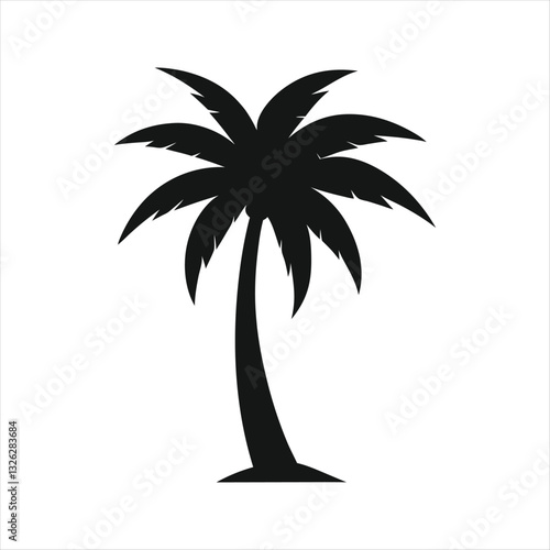 Palm Tree Beach Summer left ocean Silhouette Vector White Background