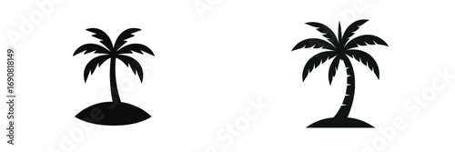 Palm tree silhouette set for summer vacation and tropical travel design elements isolated on a white background