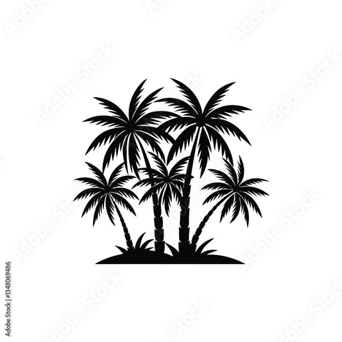 palm, tree, beach, tropical, vector, summer, island, nature, illustration, silhouette, travel, sun, sea, coconut, landscape, palm tree, leaf, paradise, ocean, sunset, plant, design, vacation, holiday, sky