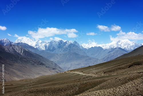 road, countryside, mount, central asia, mountaineering, asia, range, panorama, hill, glacier, sky, extreme, adventure, hiking, terrain, summer, blue, rock, view, tour tourism, scenic, beautiful, mountain, peak, vale, scenery, tajikistan, trekking, landscape, nature, mountain, travel