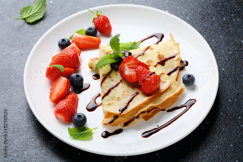 crepes, food, fresh, berry, breakfast, battercake, french, strawberry, fruit, sweet, sauce, berry, meal, delicious, epicure, dessert, homemade, healthy, week, traditional, snack, lunch, blueberry, gold, hot, gold, closeup, plate, background, white, summer, topview, black