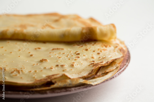 pancakes on a plate. homemade thin fried pancakes.