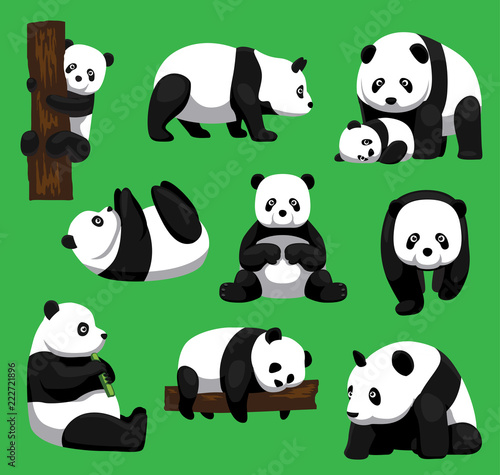 Panda Bear Nine Poses Cartoon Vector Illustration