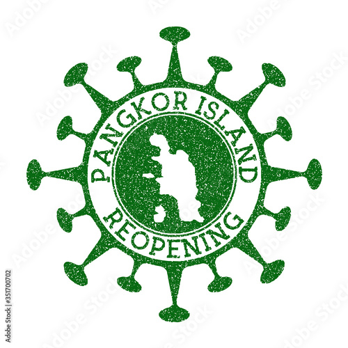 Pangkor Island Reopening Stamp. Green round badge of island with map of Pangkor Island. Island opening after lockdown. Vector illustration.