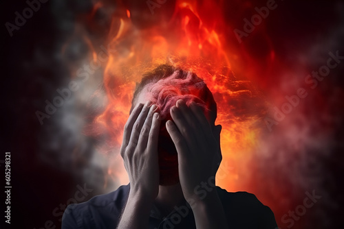 Panic attack and mental disorder concept creative illustration. AI generated