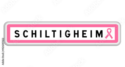 Panneau de sortie de Schiltigheim, Bas-Rhin, Grand Est avec Ruban Octobre Rose