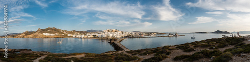 Panorama of capital and port of Naxos, chora, from Portara area, Cyclades, Greece