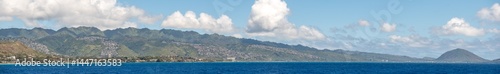 Panorama of Oahu coastline with high-rises and Diamond Head crater, captured March 15, 2019 in Honolulu, Hawaii, USA