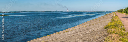 Panorama of the Dnieper River in the flow below the city of Kiev.