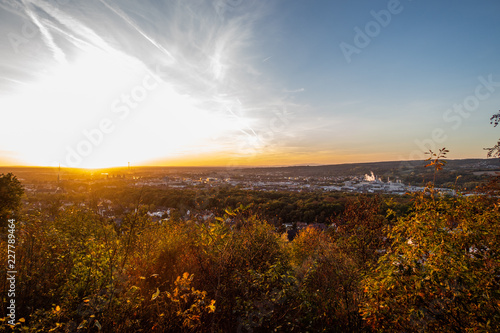 Panorama over Aschaffenburg at sunset in Autumn