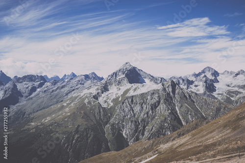 Panorama view of dramatic sky and mountains scene in national park Dombay
