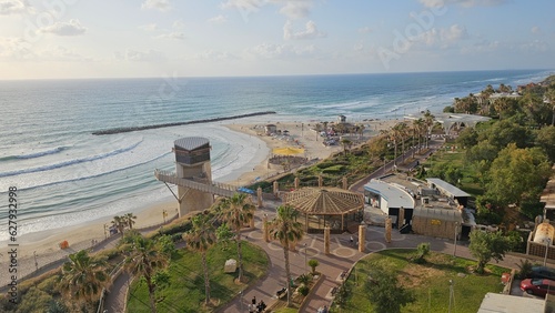 panoramic beach sea promenade esplanade netanya israel sky sunset sun