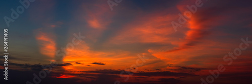 Panoramic beautiful colorful golden hour twilight sky. Beautiful cloud and sky nature background in magic hour. Amazing colorful sky and dramatic sunset evening sky.